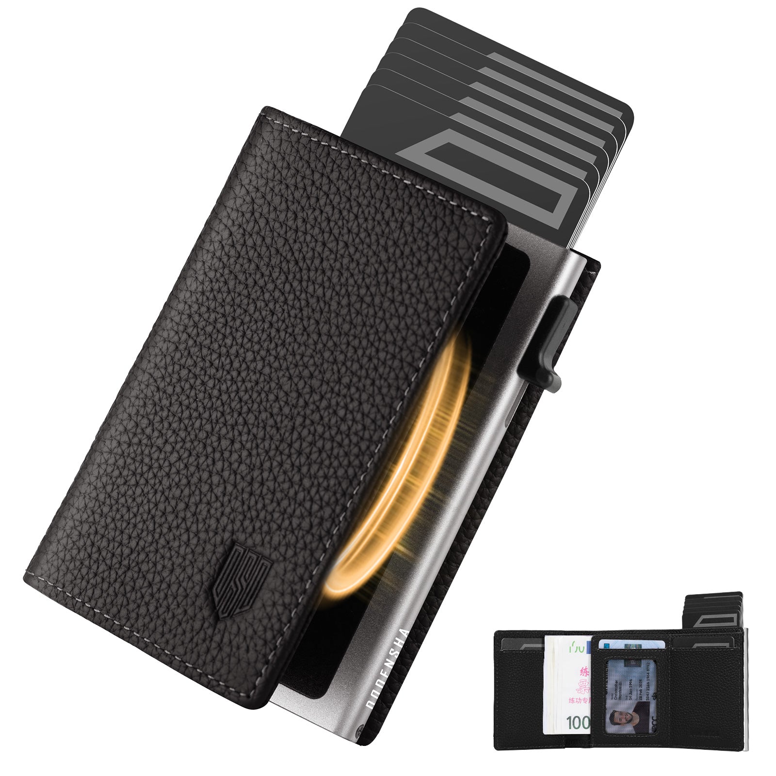 🔹 [EXCEPTIONAL QUALITY] The DODENSHA men's wallet is handcrafted by experienced artisans from selected genuine leather and produced with superior craftsmanship. Every seam of the man's wallet reflects meticulous refinement and thoughtful design. Equipped with a highly secure aluminum pop-up card case, it offers security while allowing for convenient use. The one-button pop-up feature simplifies your life. (TIPS: Men's card case for 5 cards.)